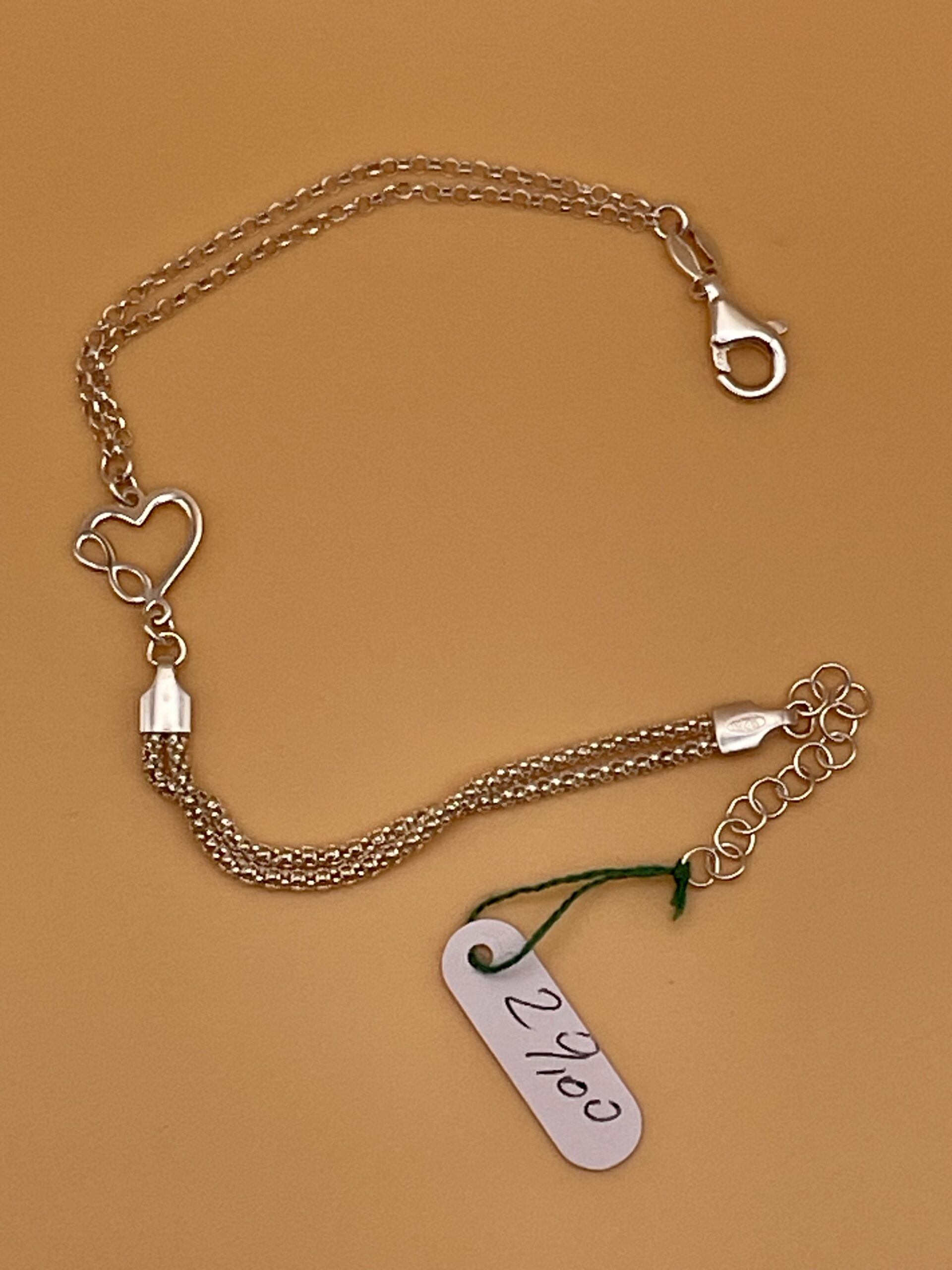 Braccialetto Cordoncino d’ argento 925 con Cuore Infinito, dotato di chiusura regolabile con anellini e moschettone.