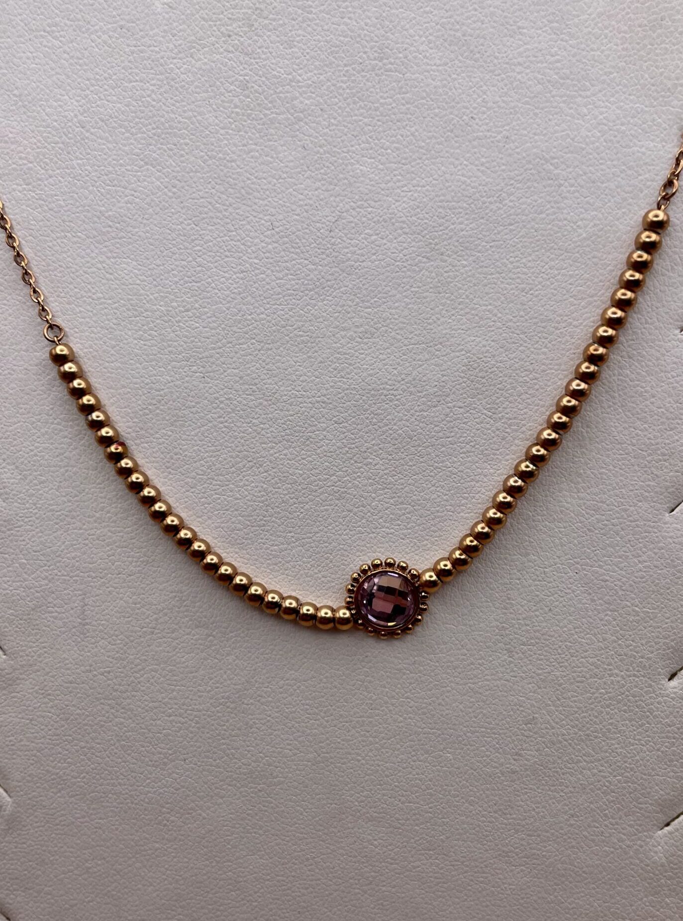 Splendida Collana in Argento 925, motivo a Sfere inpreziosita da fiore in Pietra dura Viola.