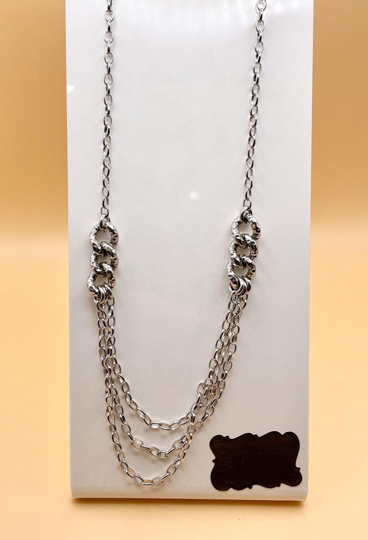 Elegante Girocollo in argento 925, Anelli intrecciati con trittico cerchi.
