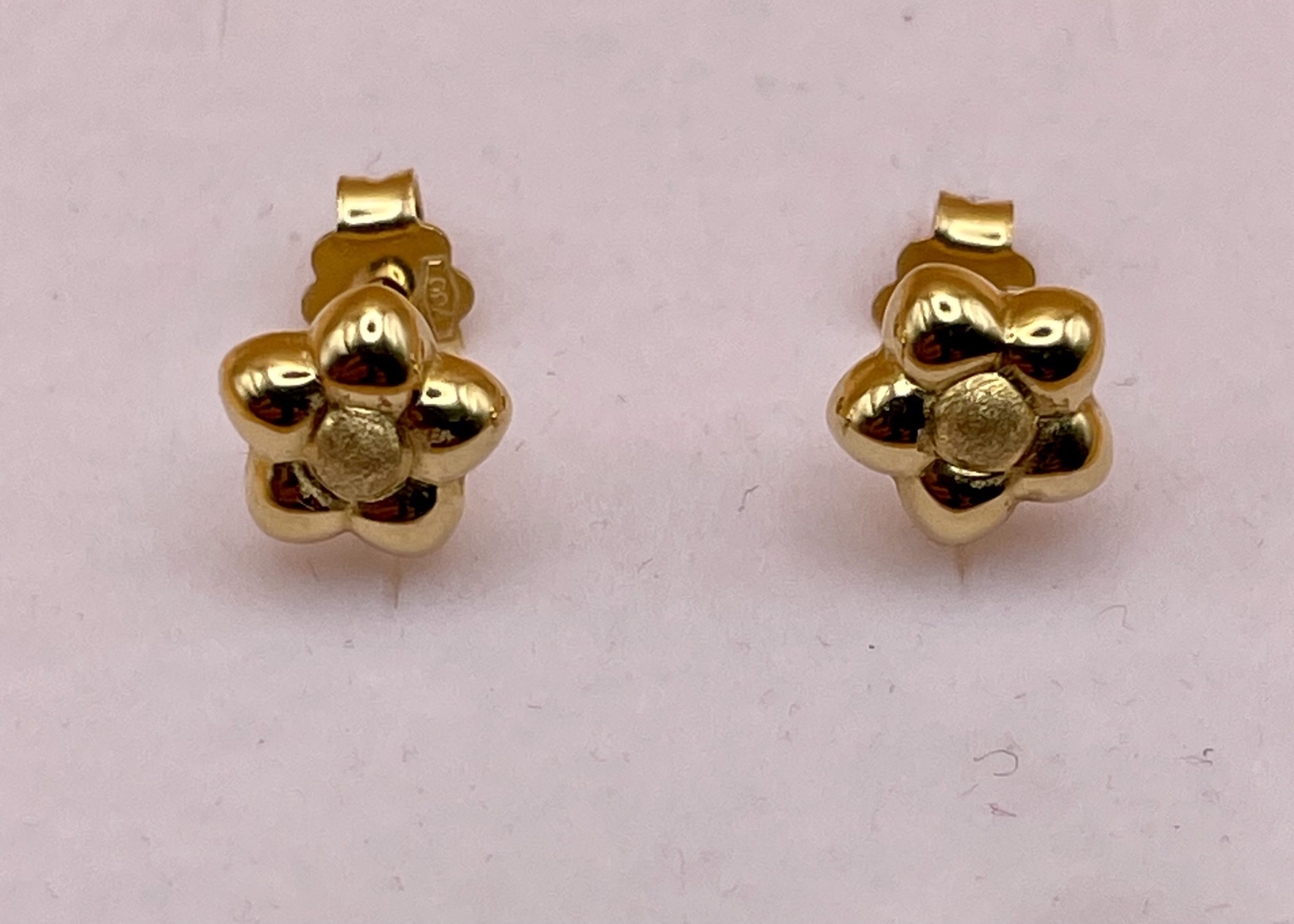 Splendidi orecchini in oro giallo 18 carati, a forma di graziosi Fiorellini impreziositi da lavorazione Lucida.