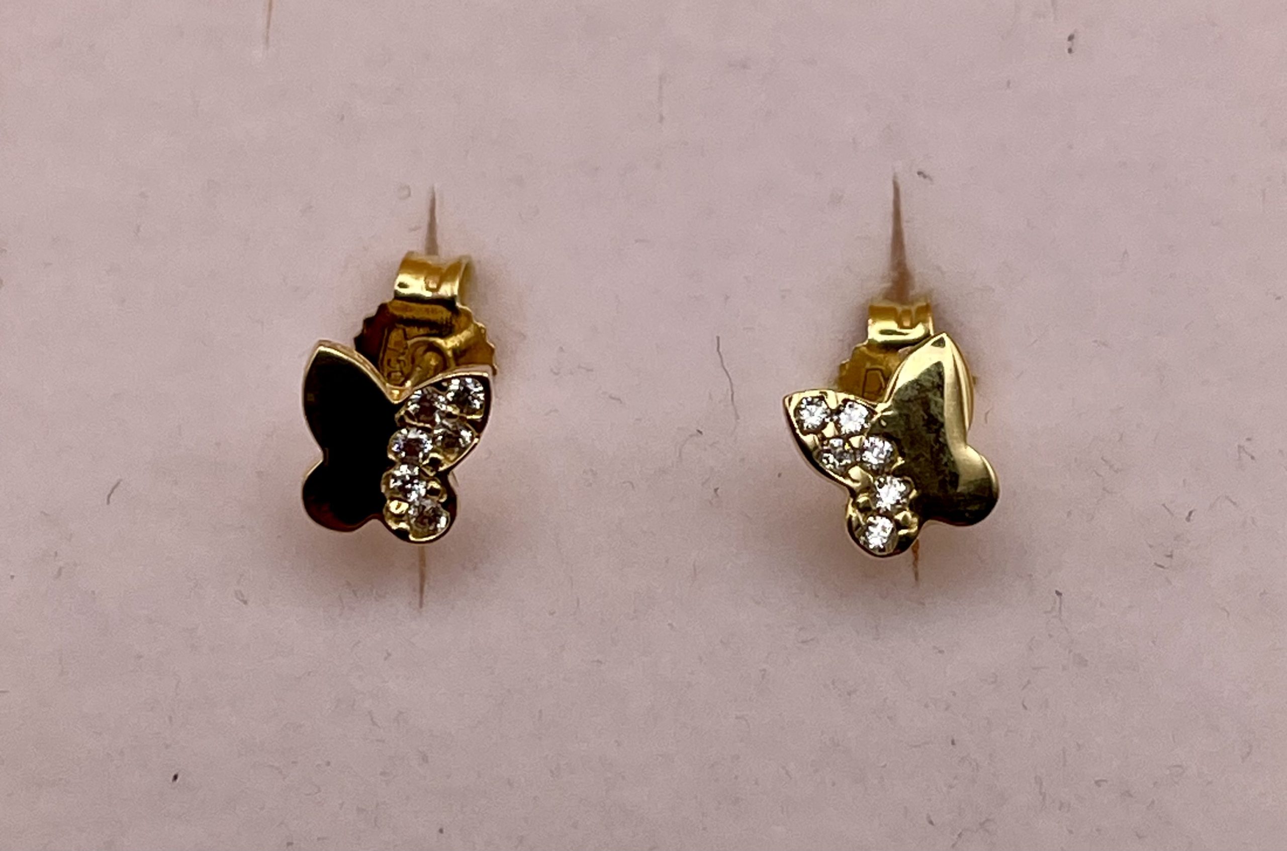 Splendidi orecchini in oro giallo 18 carati, a forma di graziose Farfalle impreziositi da lavorazione con Brillanti.