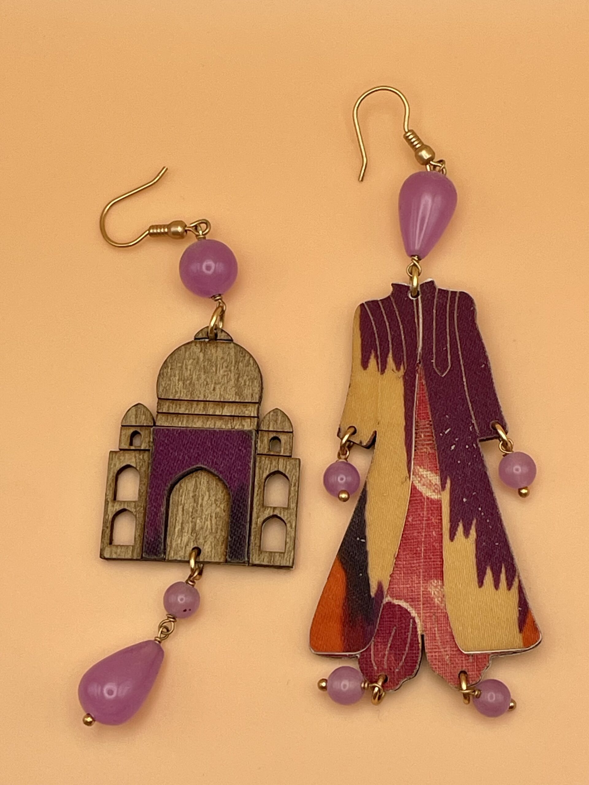 Orecchino a Pendente di Moda Lèbolè serie ‘Bambola’, stile orientale, impreziosito da Ametista.