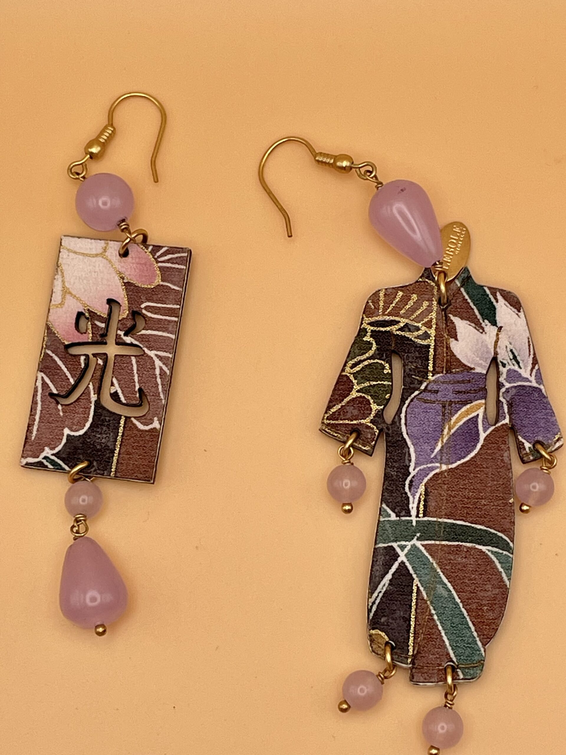 Orecchino a Pendente di Moda Lèbolè serie ‘Bambola’, stile orientale, impreziosito da Ametista Chiara.
