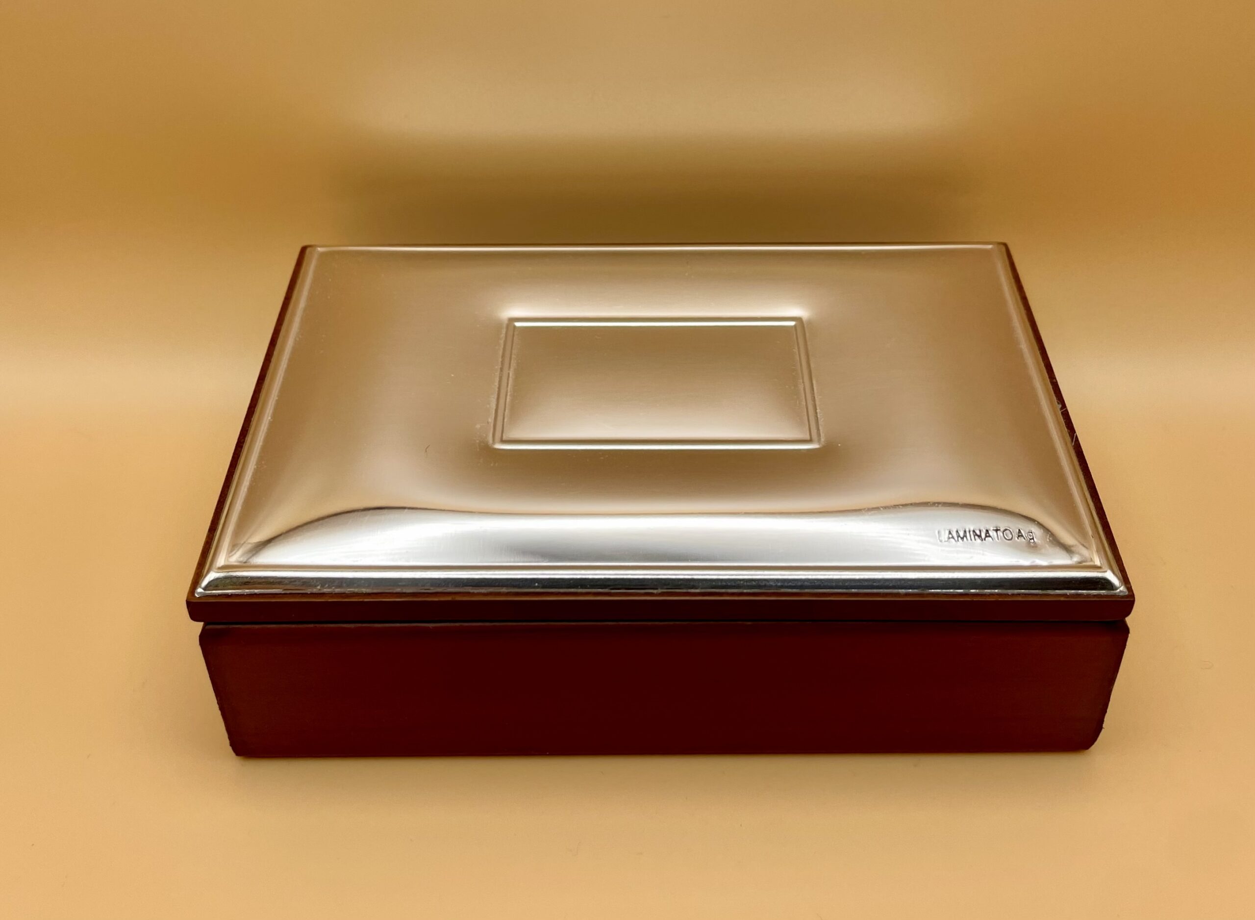Graziosa Scatola Portagioie in legno pregiato, impreziosito da decorazione Cuscino in Argento 925, ideale come arredamento o regalo per ricorrenza.